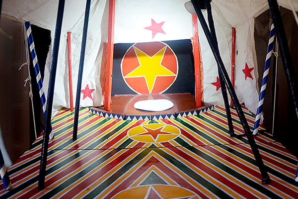 El nombre Gran circo del Arca se lo pedimos al señor Haroldo por vía de lo sagrado. Es muy bueno el Haroldo, él ahora está a la diestra de dios y cada tanto nos comunicamos y aparece, aparece cuando el andar se complica, en lo frágil, en lo desprotegido y nos da una mano.