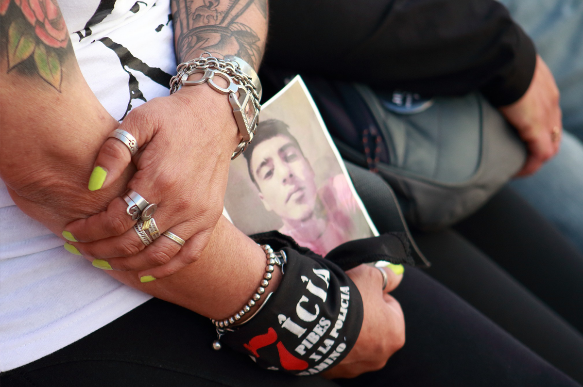 Así canaliza su dolor «Sé que es difícil entender estas cuestiones, cuando siempre estuvimos aleccionados por el algo habrán hecho, por algo estaban ahí. Si como sociedad no sentimos que eso nos lesiona a todos/as y si lo naturalizamos seguirá pasando como fue la Masacre aquí en nuestra ciudad, al año en Esteban Echeverría 10 víctimas fatales, en 2019 la Masacre de Monte, siempre bajo la tutela del brazo armado del Estado». Cris se aferra a la foto de su hijo en una remera, en un pin, o en el pañuelo que reza la frase Jus7ticia por los 7, para gritar en cada marcha, en cada acto que el «Nunca Más es ni un pibe menos»…